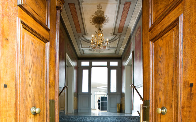 Es stellt bereits eine Ausnahme dar, dass so gut wie alle Zimmertüren noch aus der Erbauungszeit stammen. In seltener Weise besitzen so gut wie alle Türen noch die originalen klassizistischen Messingtürklinken. In allen Räumen hat das Gebäude sowohl den originalen Deckenstuck als auch die Böden bewahrt, die in den Haupträumen als Tafelparkett verlegt sind.